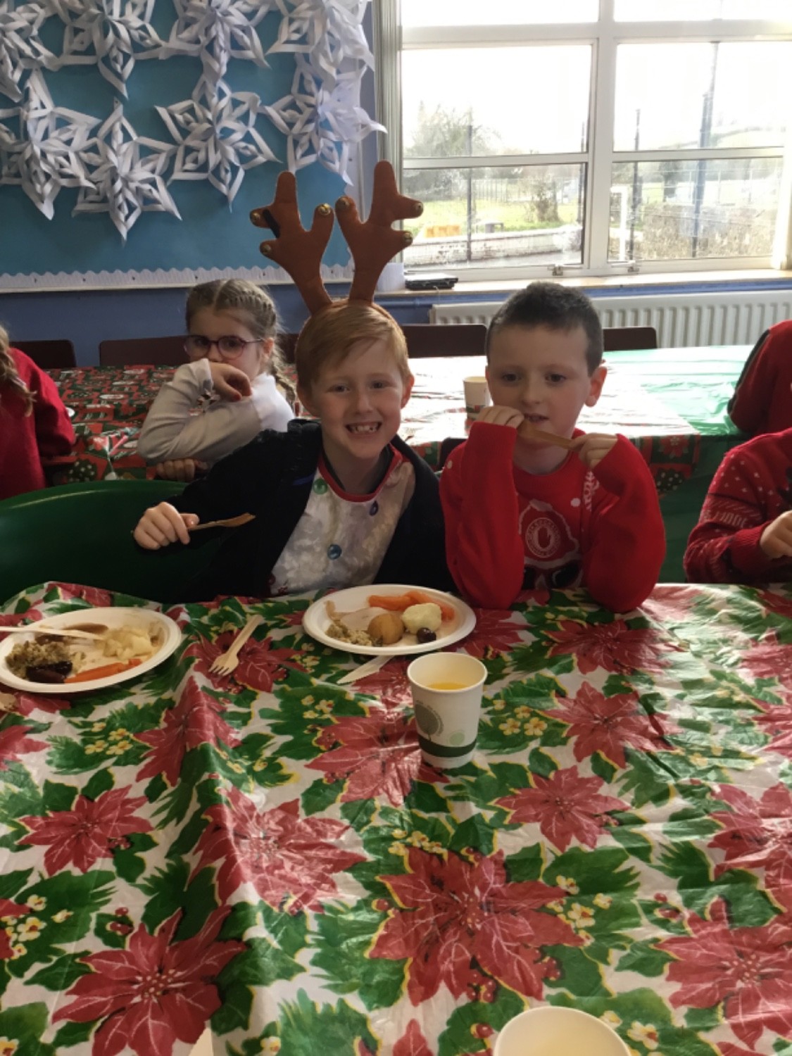 We all enjoyed a lovely Christmas Dinner in school today! A huge thanks to our kitchen staff today, Mrs Vincent and Mrs McGleenan, and a special thank you to Michelle for her hard work and efforts in ensuring that all children and staff were so well looked after as always!